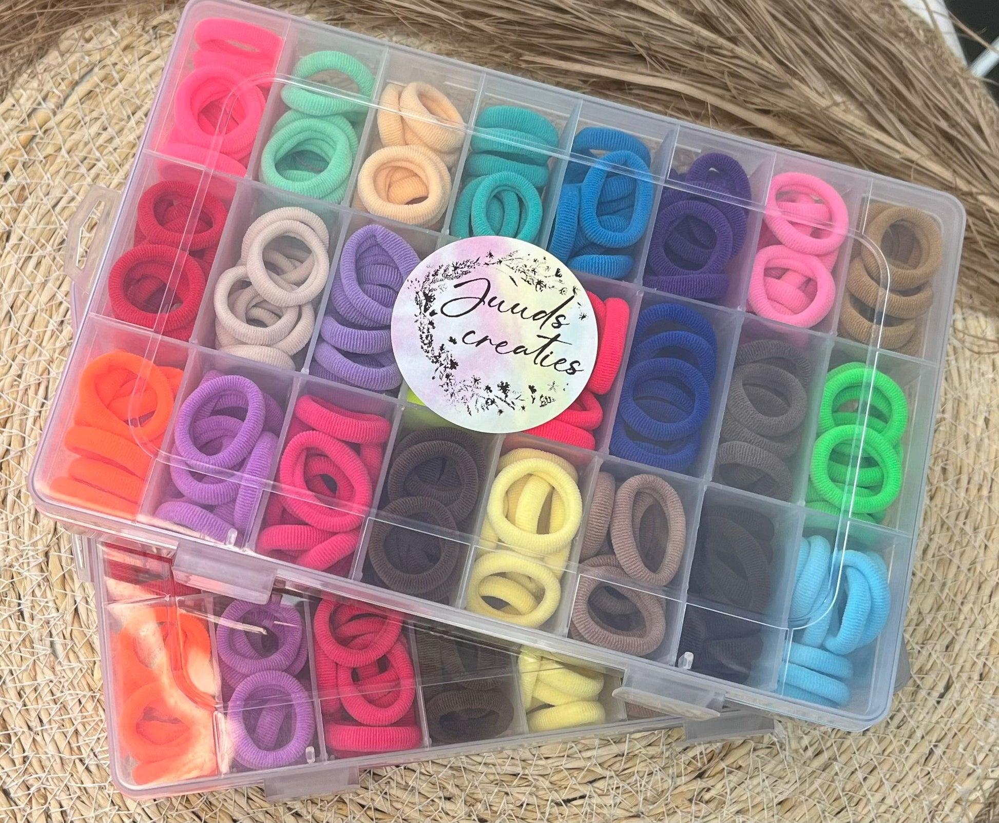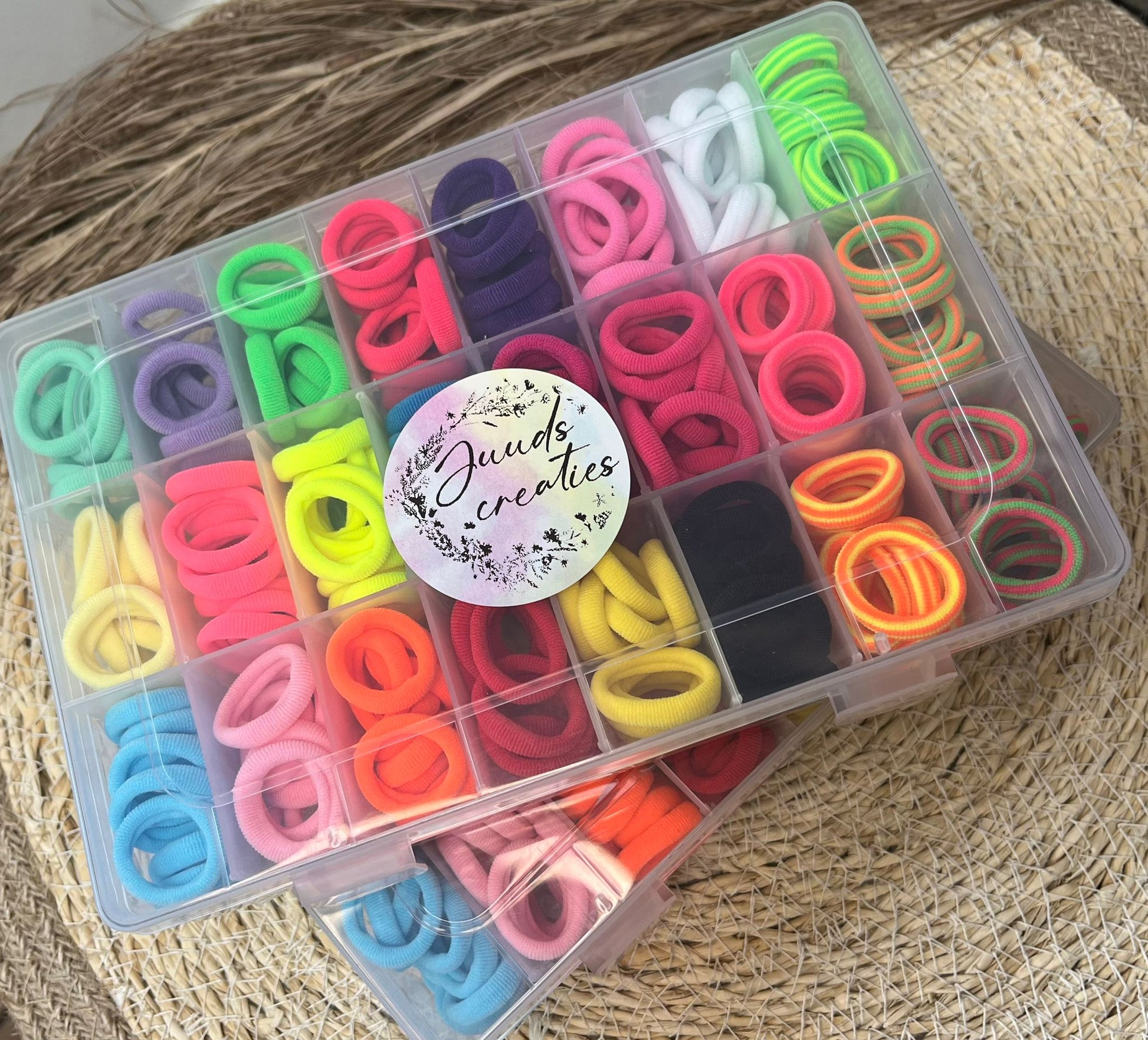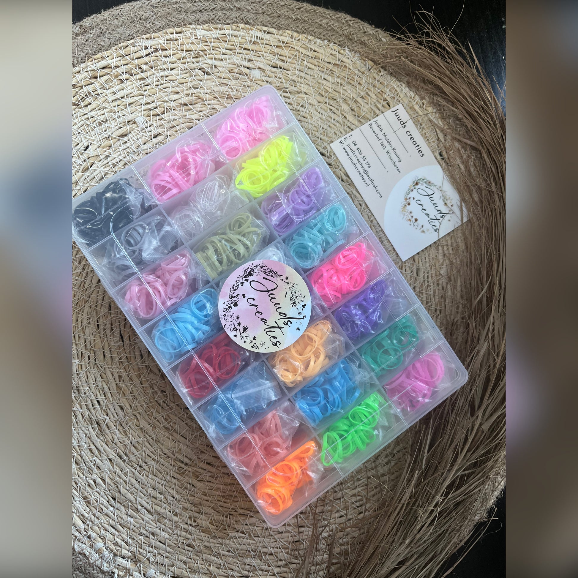 280 medium elastiekjes in 24 verschillende kleuren met een streepje
