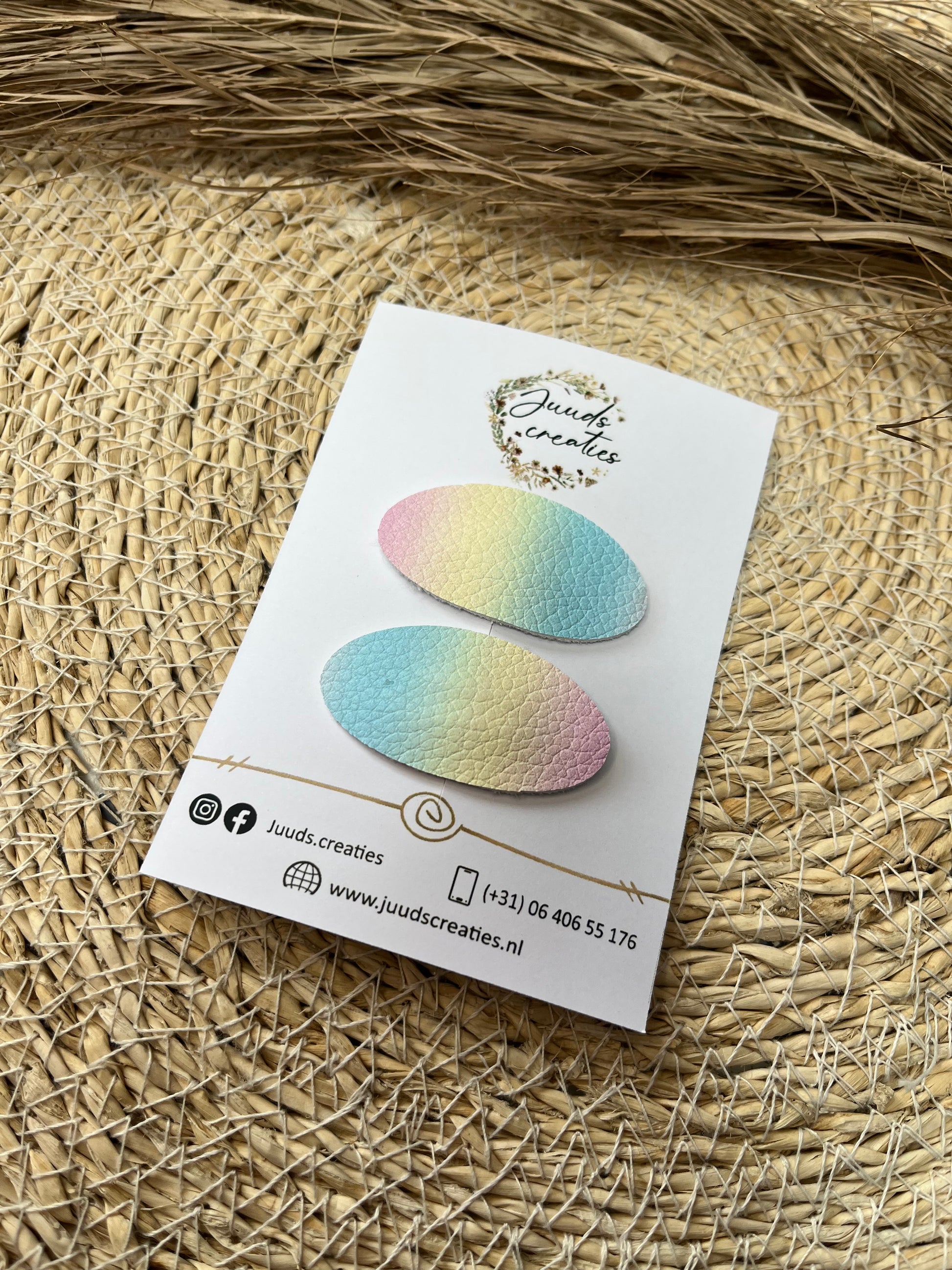 Een vrolijk setje van 2 haarclips met verschillende printjes. Gemaakt op een 4 cm clickkakspeldje