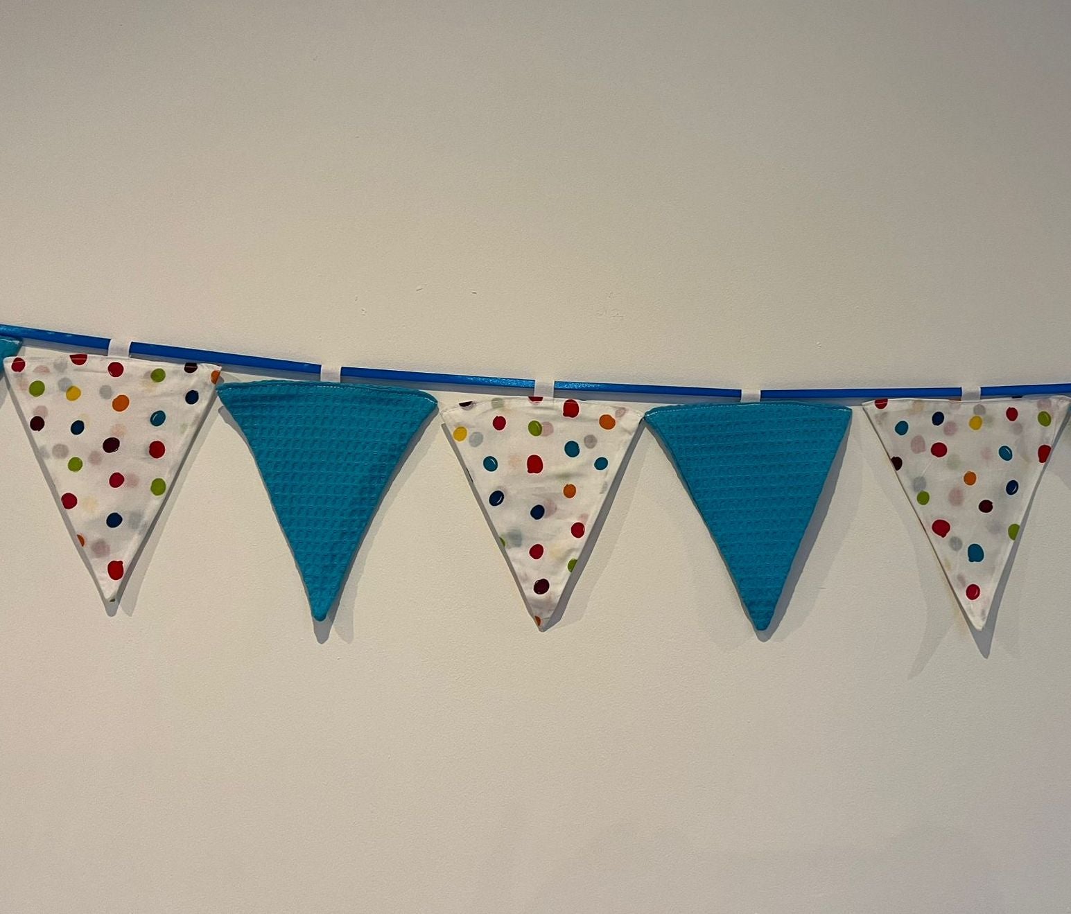 Hoe leuk zijn deze handgemaakte stoffen vlaggenlijnen.