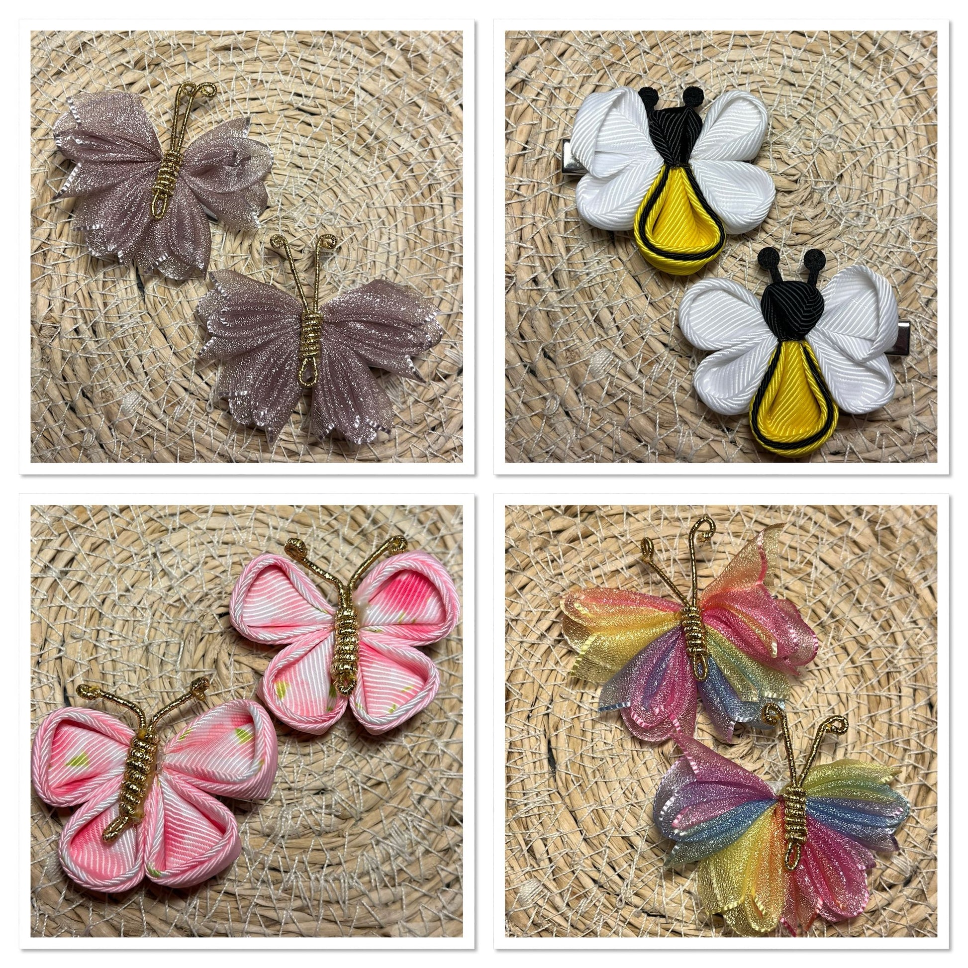 Een lieve set haarclipjes met 2 bijtjes of vlinders